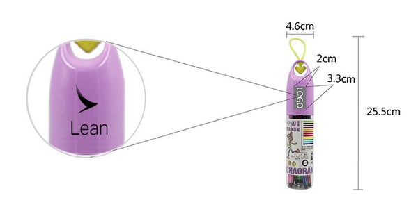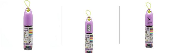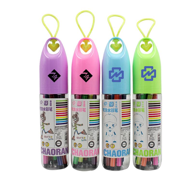 Set of 12 washable watercolour markers in coloured bottle with heart-shaped strap.