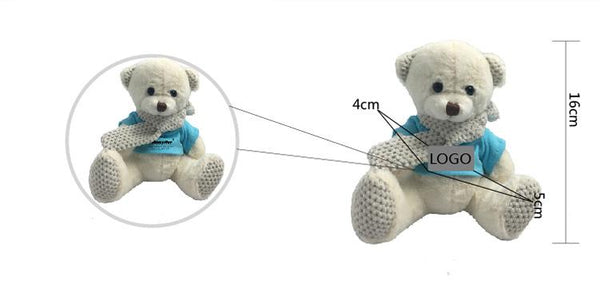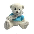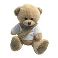 Teddy bear plush toy with t-shirt and knitted scarf, knitted ears and feet (16cm).