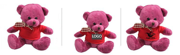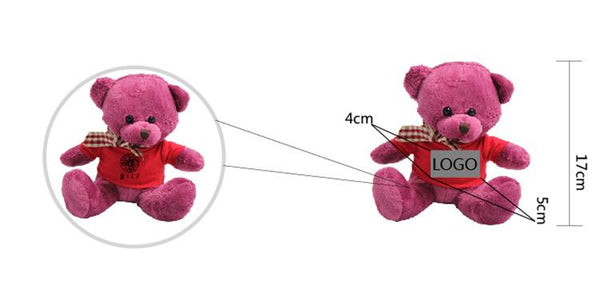 17cm Teddy Bear Plush Toy With T-Shirt And Checkered Ribbon