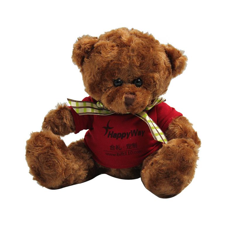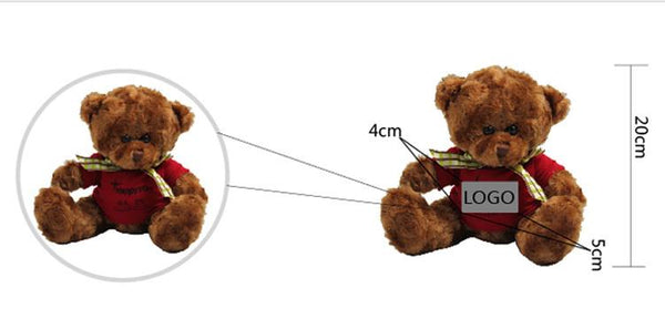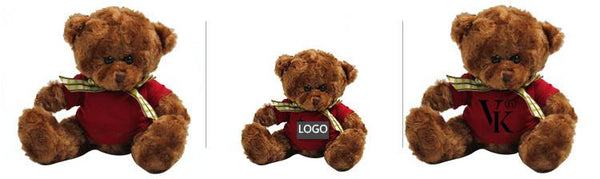 20cm Teddy Bear Plush Toy With T-Shirt And Checkered Ribbon