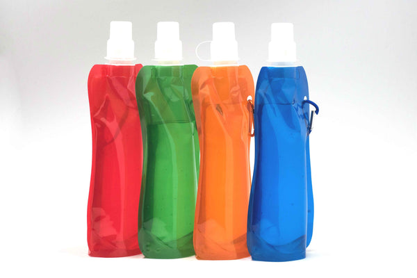 BPA Free collapsible water bottle with attractive and easy-grip contoured shape. Comes with a carabiner and a sports drinking nozzle.