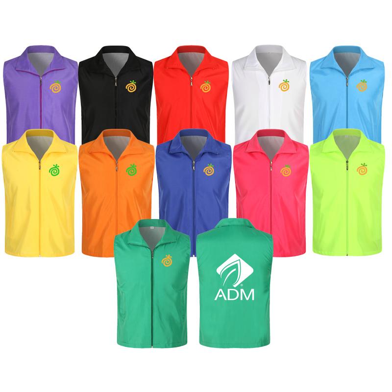 Coloured sleeveless vest with pockets and zip (m to 3xl).