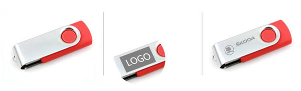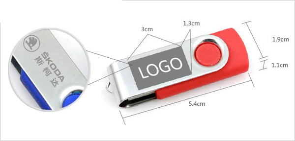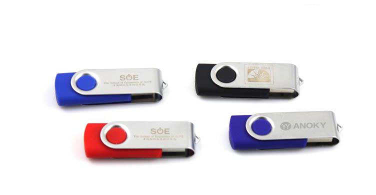 Rotating USB thumbdrive with 4GB storage capacity.