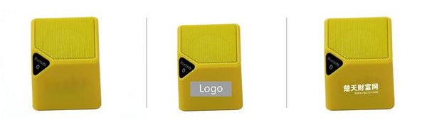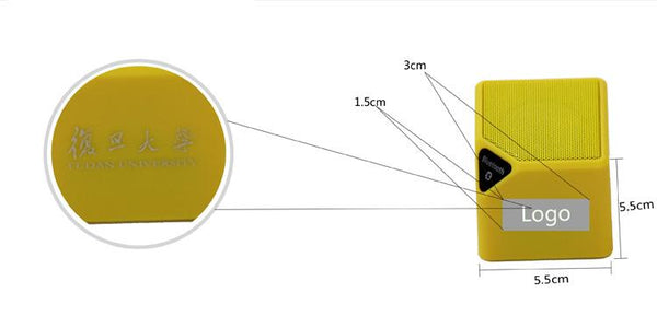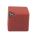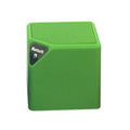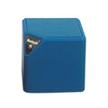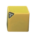 Wireless bluetooth speaker in the shape of a coloured cube.