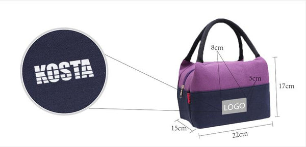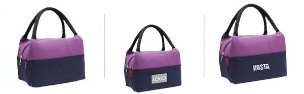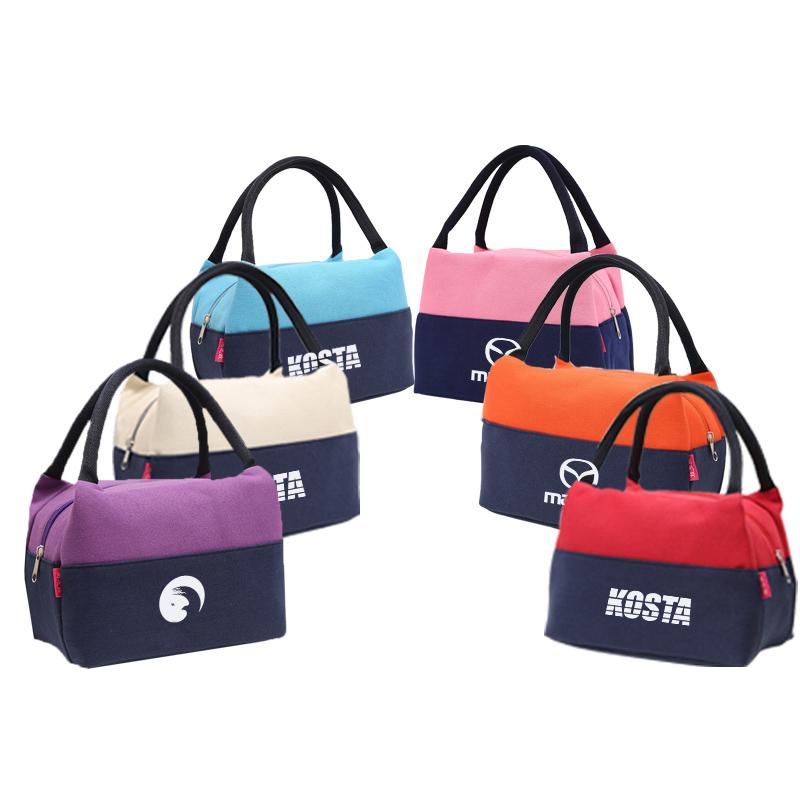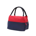 Dual-coloured waterproof canvas lunch bag with black handles.