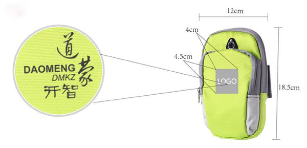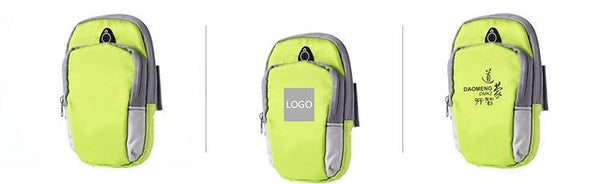 Multifunctional phone pouch for running and outdoors use with zippered compartments.