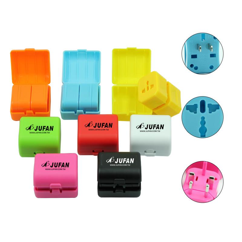 Coloured multifunctional travel plug adapter.