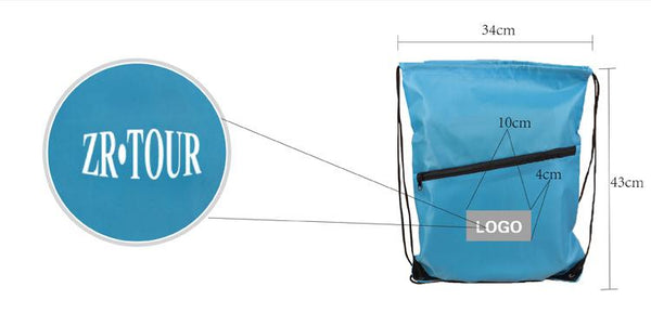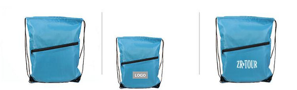 Nylon drawstring backpack with zip compartment and black shoulder straps.