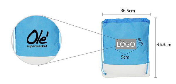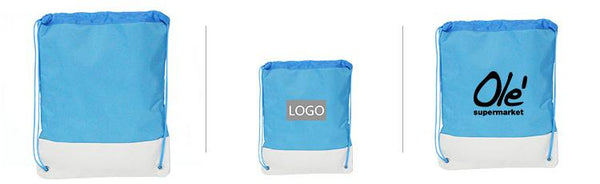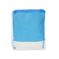 Polyester drawstring backpack with quilt base and blue shoulder straps.