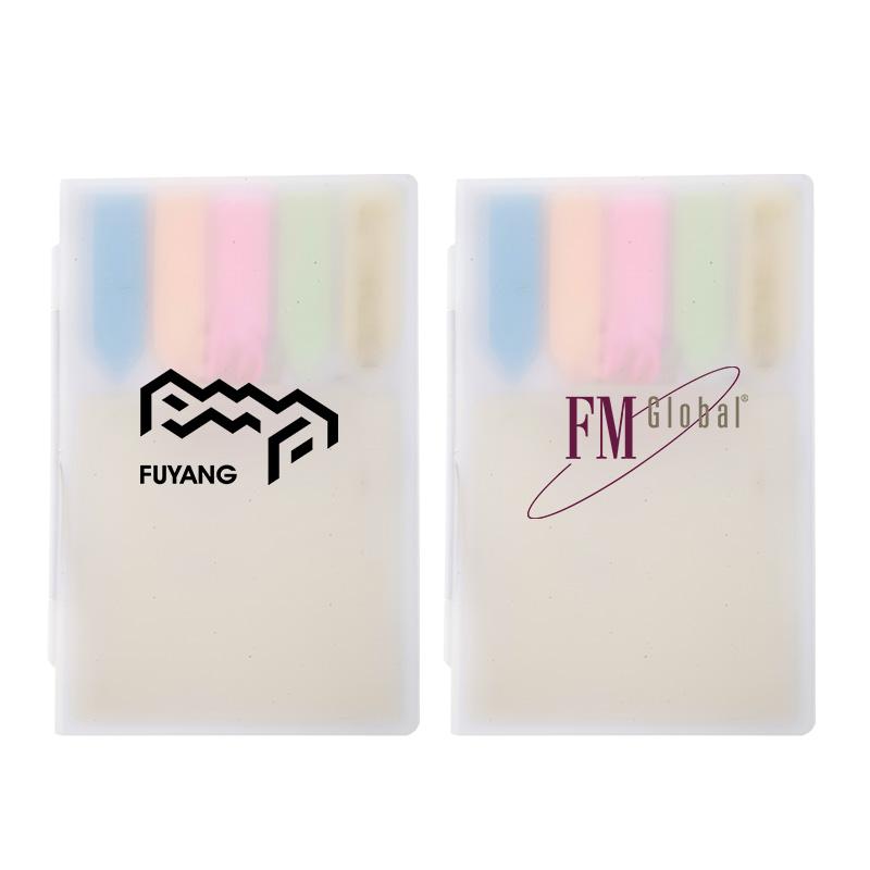 Sticky notes set in snap closure box. includes sticky notes and sticky flag pads in 5 colours.