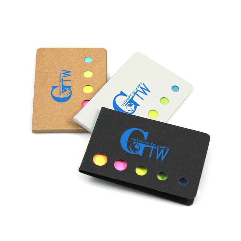 Eco-friendly mini sticky flag pads set with round cut-outs on cover.