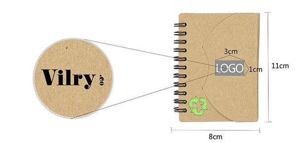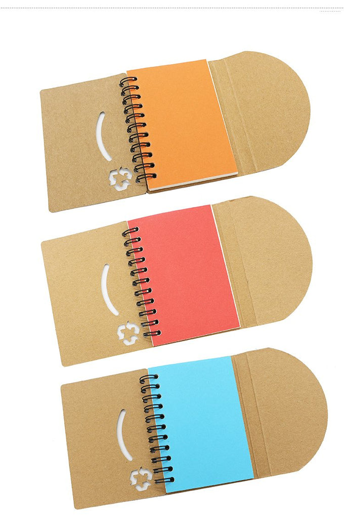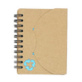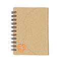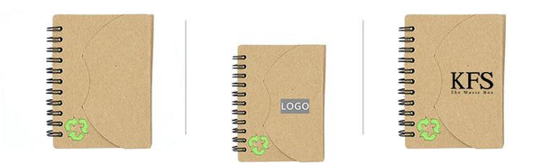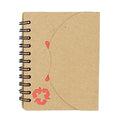 Eco-friendly notebook with curved flap closure and recycling symbol on lower left corner of cover.