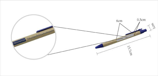 Eco-friendly ballpoint pen with recycled paper and plastic pen body.