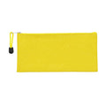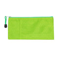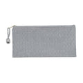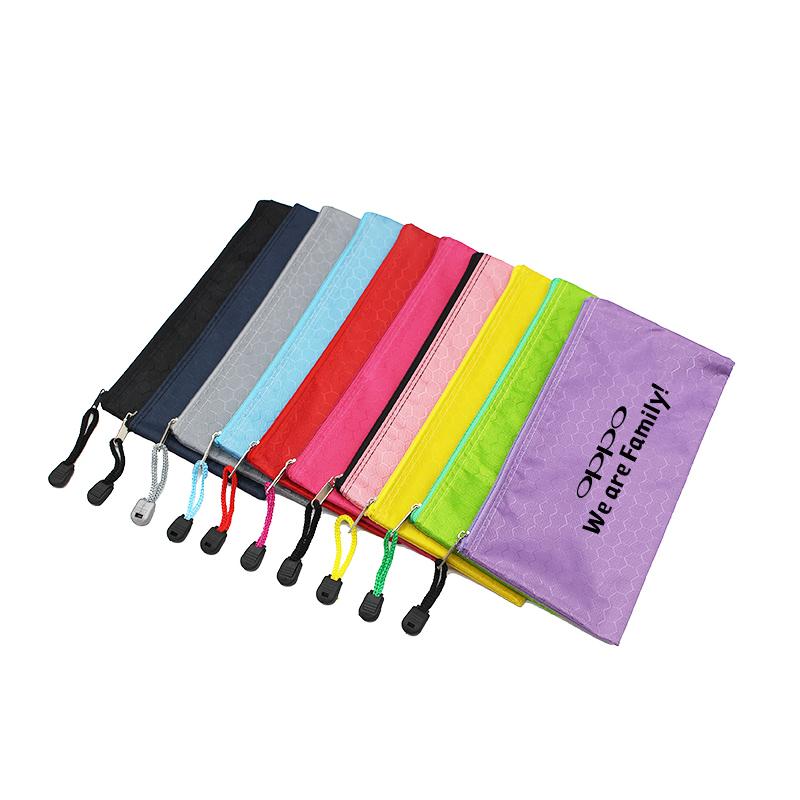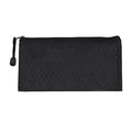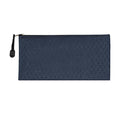Flat rectangular zippered stationery pouch with hexagonal patterns.