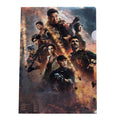 L-shaped document holder with curved top right corner.