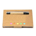 Mini notepad with kraft paper cover and window. includes mini pen, notepad and 5 sticky flag pads.