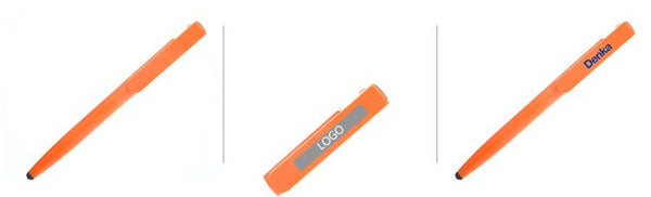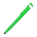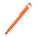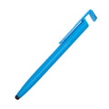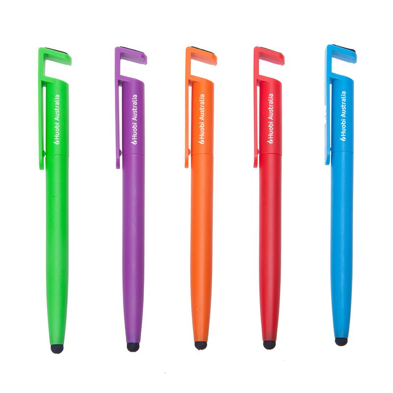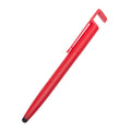 Multifunctional ballpoint pen with mobile phone holder and stylus.