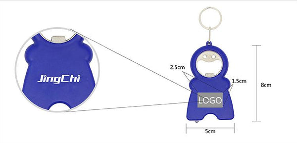 Smiling Man Keychain With Tape Measure, Led Light And Bottle Opener