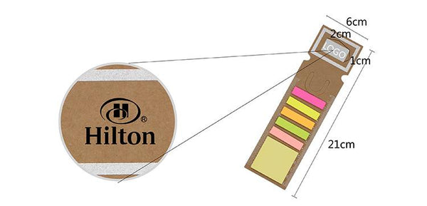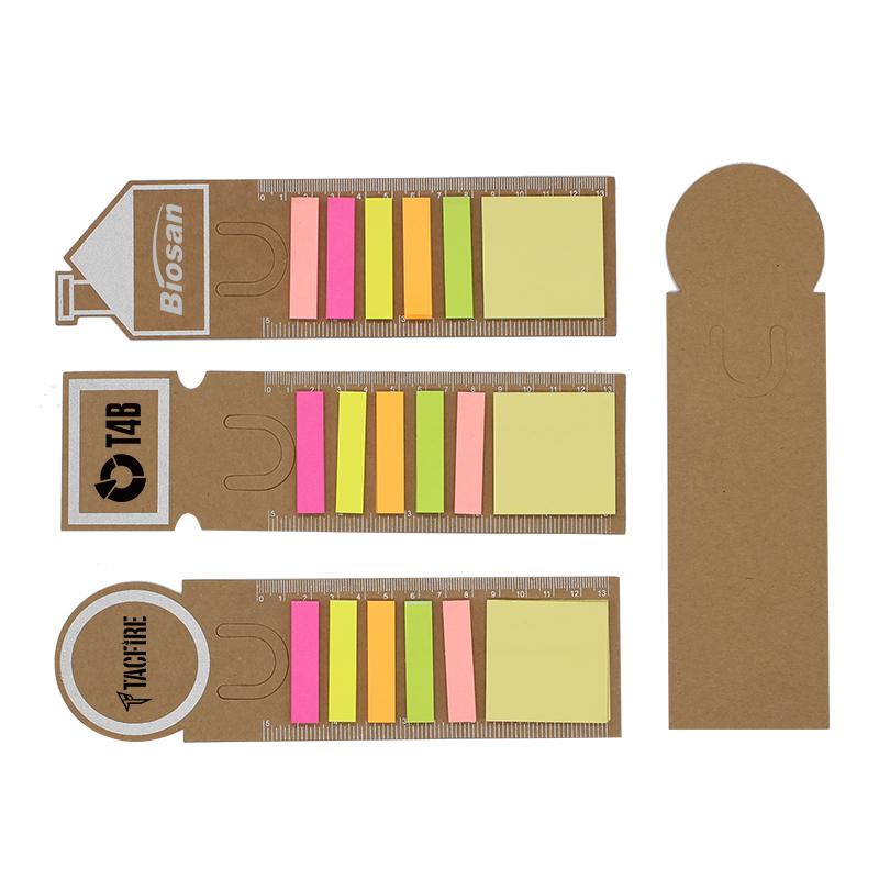 Sticky notepad set on Kraft paper ruler with hanger. Includes sticky notepad and 5 sticky flag pads.