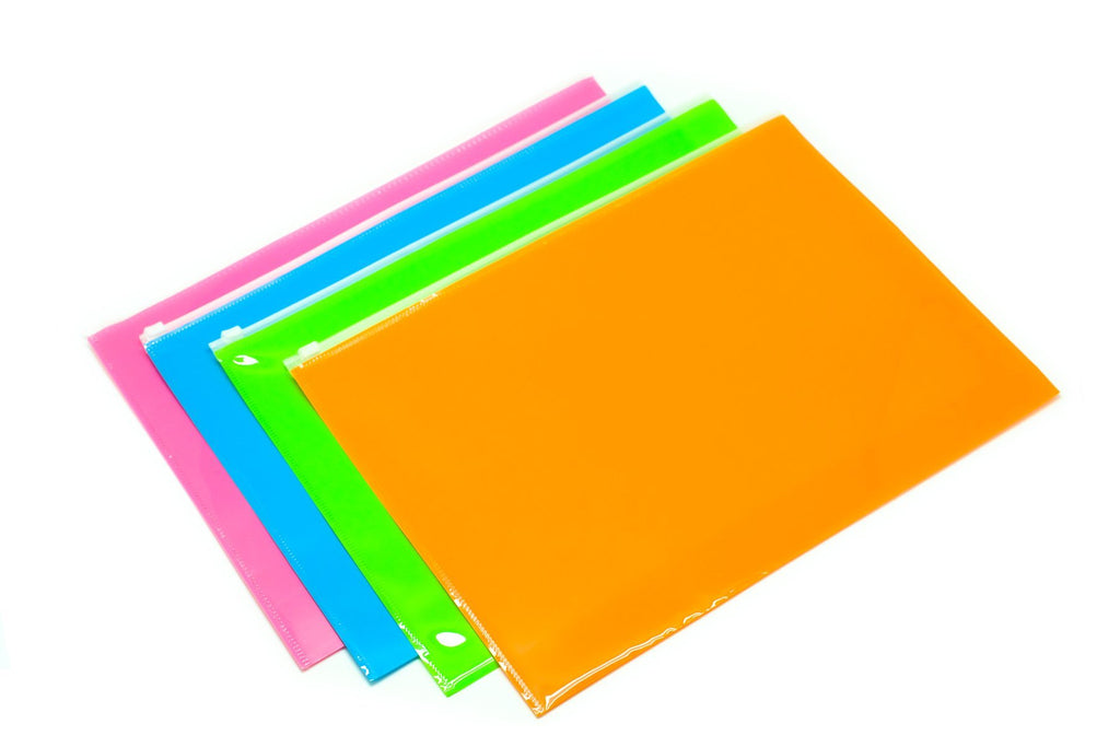 A4 Neon glossy zip case. Great for stack of documents or general stationery. Assorted colours.