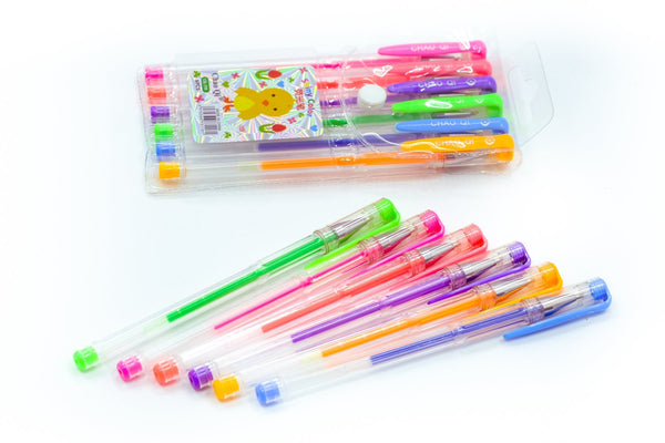 6 piece gel pen set with neon / fluorescent ink! Great for note taking, highlighting or even doodling. Comes in a button case for easy organisation and convenience.