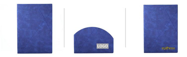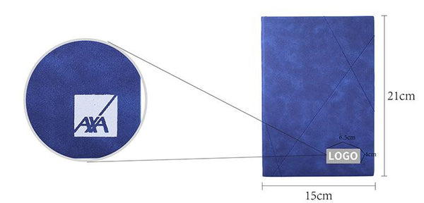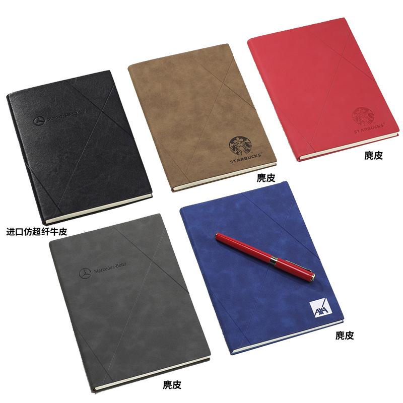 Business paperback notebook with diagonal lines on imitation leather cover.