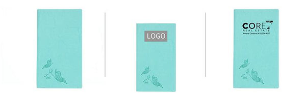 Small rectangular paperback notebook with butterfly designs embossed on PU cover.