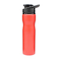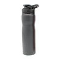 Stainless steel drinking bottle with matte metallic grooved body, handle and spout (750ml capacity).