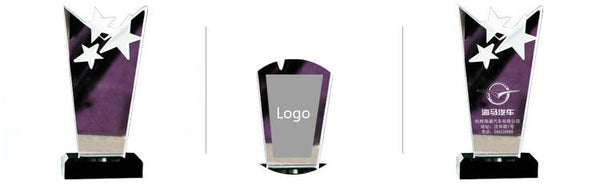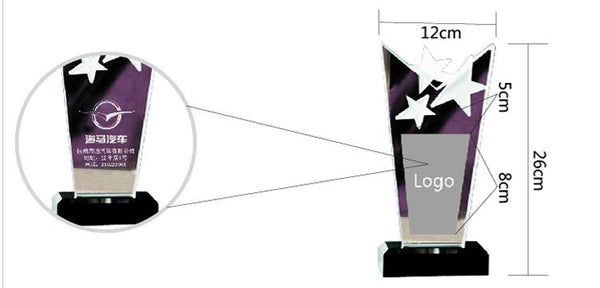 Crystal trophy with 3 stars. Includes lined flip-top box.