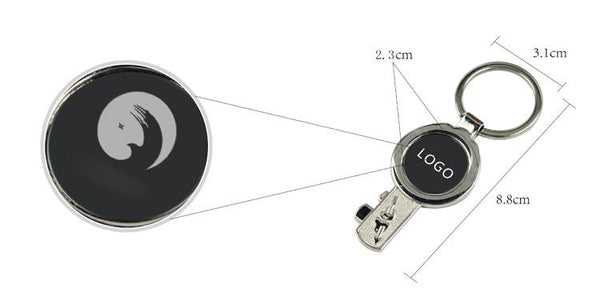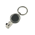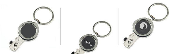 Metal keychain with key design.