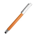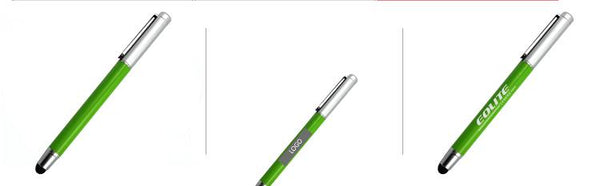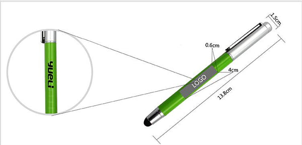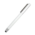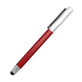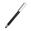 Metal pen with silver cap and stylus.