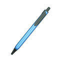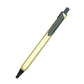 Metal triangular ballpoint pen with push button.
