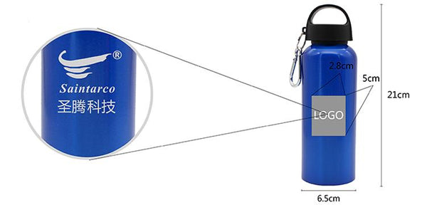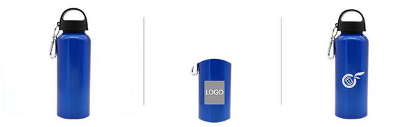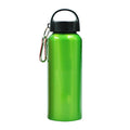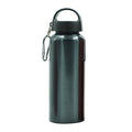 Stainless steel drinking bottle with twist-type broad handle and metal clip (500ml capacity).