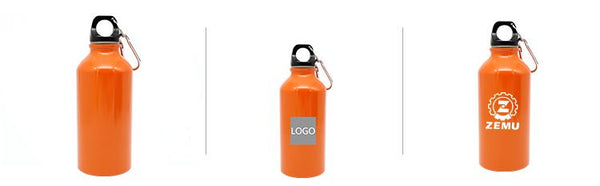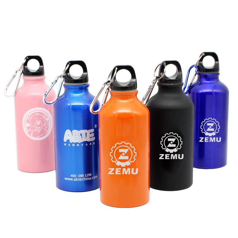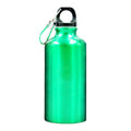 Stainless steel drinking bottle with narrow twist-type handle and metal clip (400ml capacity).