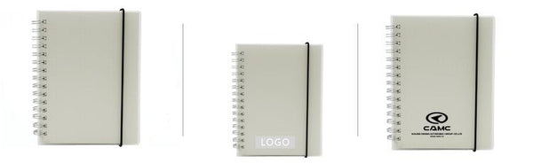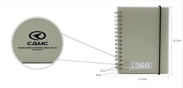 A6 dot grid notebook with clear pp cover and elastic band closure (14.2 x 11.6cm).