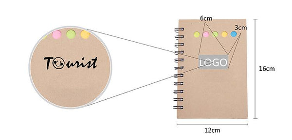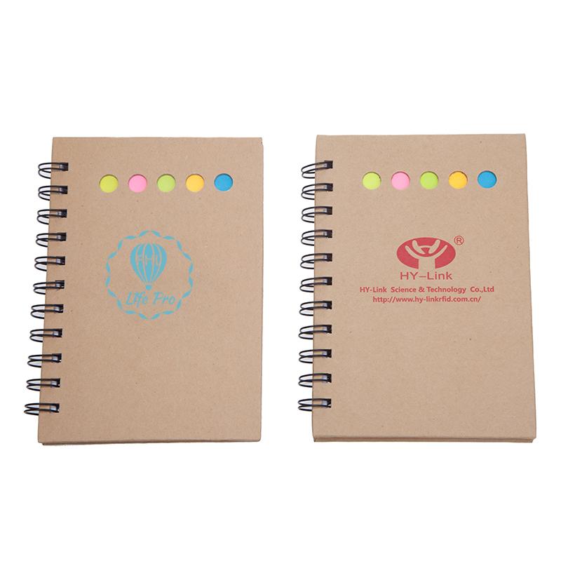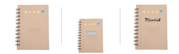 Eco-friendly notebook with kraft paper cover. includes sticky notepad and sticky flag pads in 5 colours.