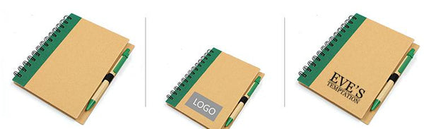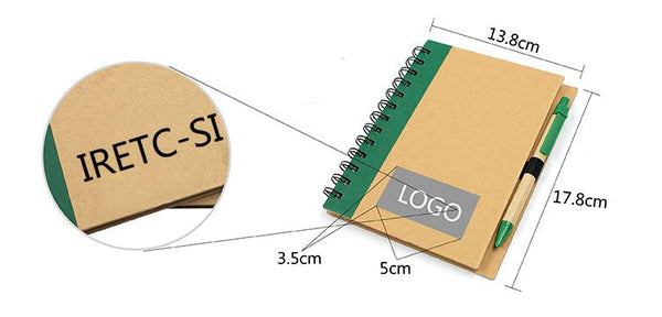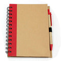 Eco-friendly notebook with coloured left margin and eco-friendly pen.