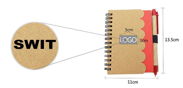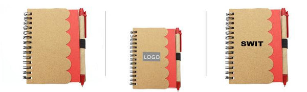 Eco-friendly notebook with scallop edge and eco-friendly pen.