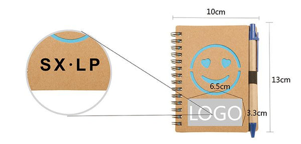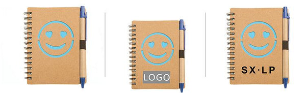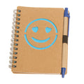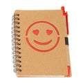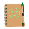 Eco-friendly notebook with smiley face design and eco-friendly pen.