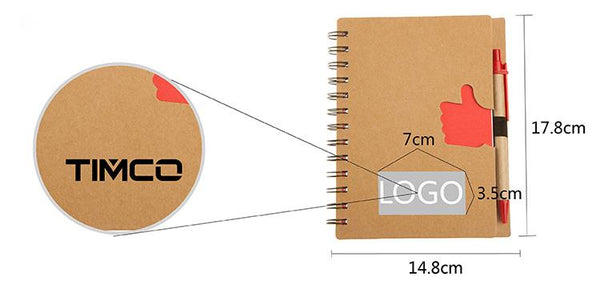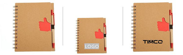 Eco-friendly notebook with thumbs up design and eco-friendly pen.