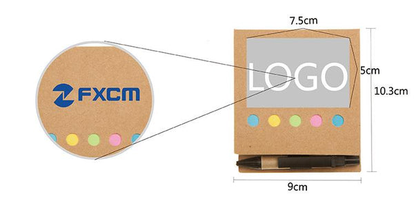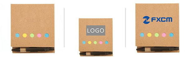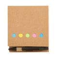 Eco-friendly square notepad with kraft paper cover. includes sticky flag pads in 5 colours and eco-friendly pen.