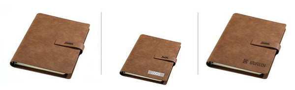 Lined notebook with pu leather cover, metal buckle and ring binder (23.5 x 17.5cm).