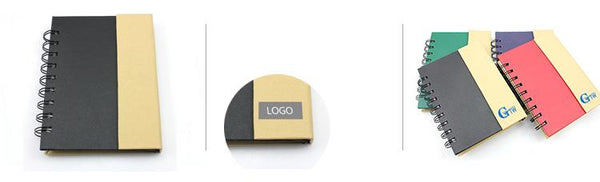 Small notebook set with coloured cover and vertical flap. Includes pen, sticky notepad and 5 sticky flag pads.