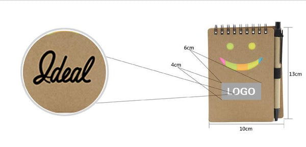 Notepad with smiley face design on kraft paper cover. includes notepad, sticky notepad, sticky flag pads in 5 colours and pen.