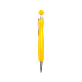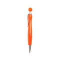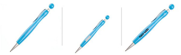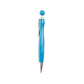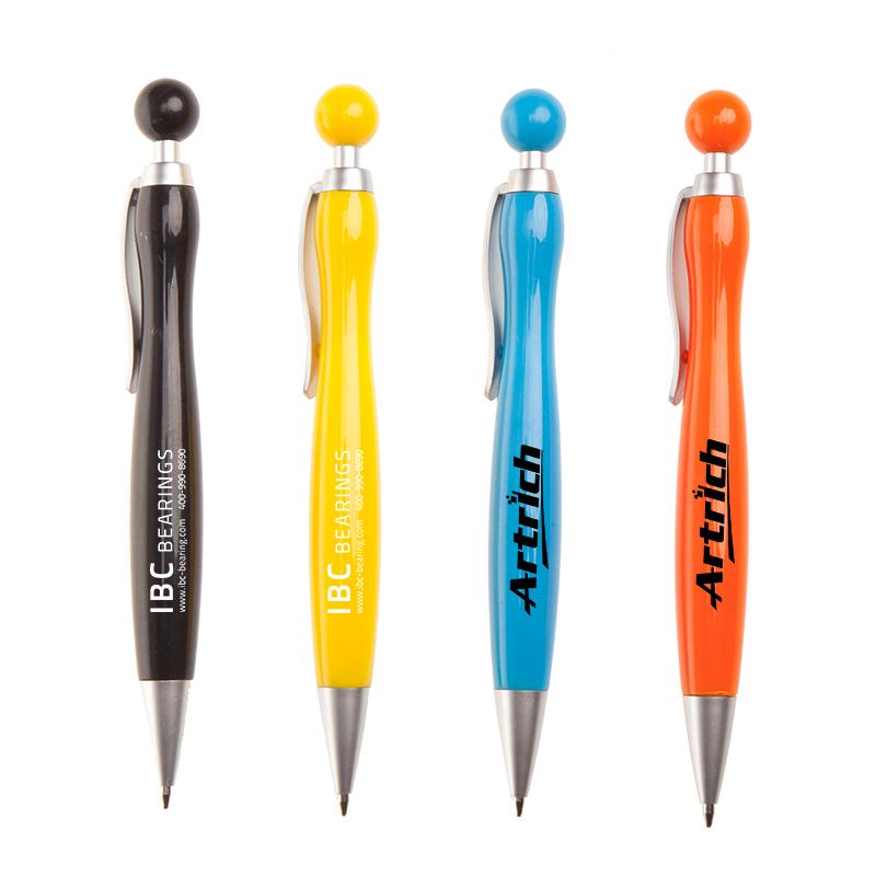 Ballpoint pen with coloured body and spherical push button.