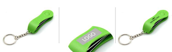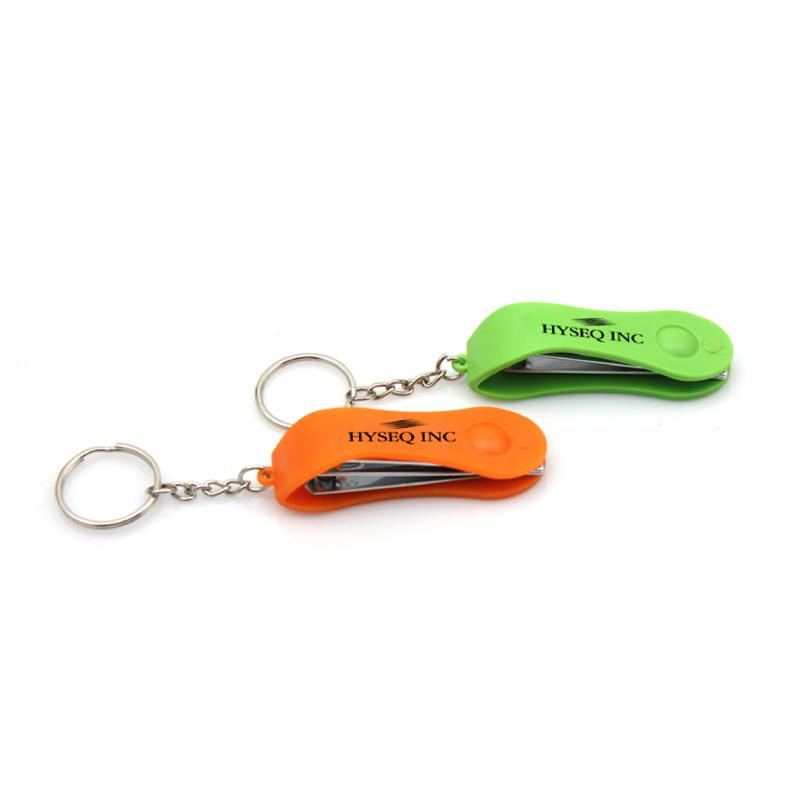 Keychain with rotating mini nail clipper in coloured cover.