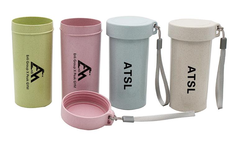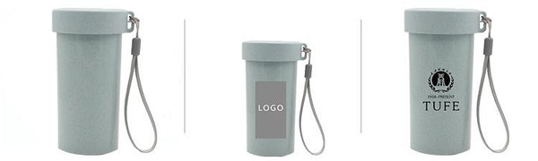 Eco-friendly and lightweight water bottle with screw cap and strap (350ml capacity).