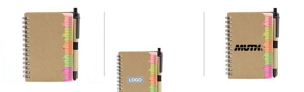 Notebook set with scallop edge kraft paper cover. includes rulers, sticky flag pads in 5 colours and eco-friendly pen.